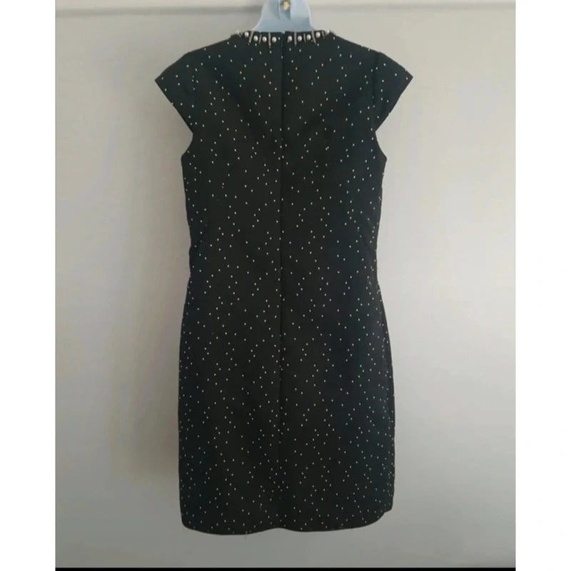 The LK Bennett Black Embellished Shift Dress UK Size 10 is made from polyester, spandex.