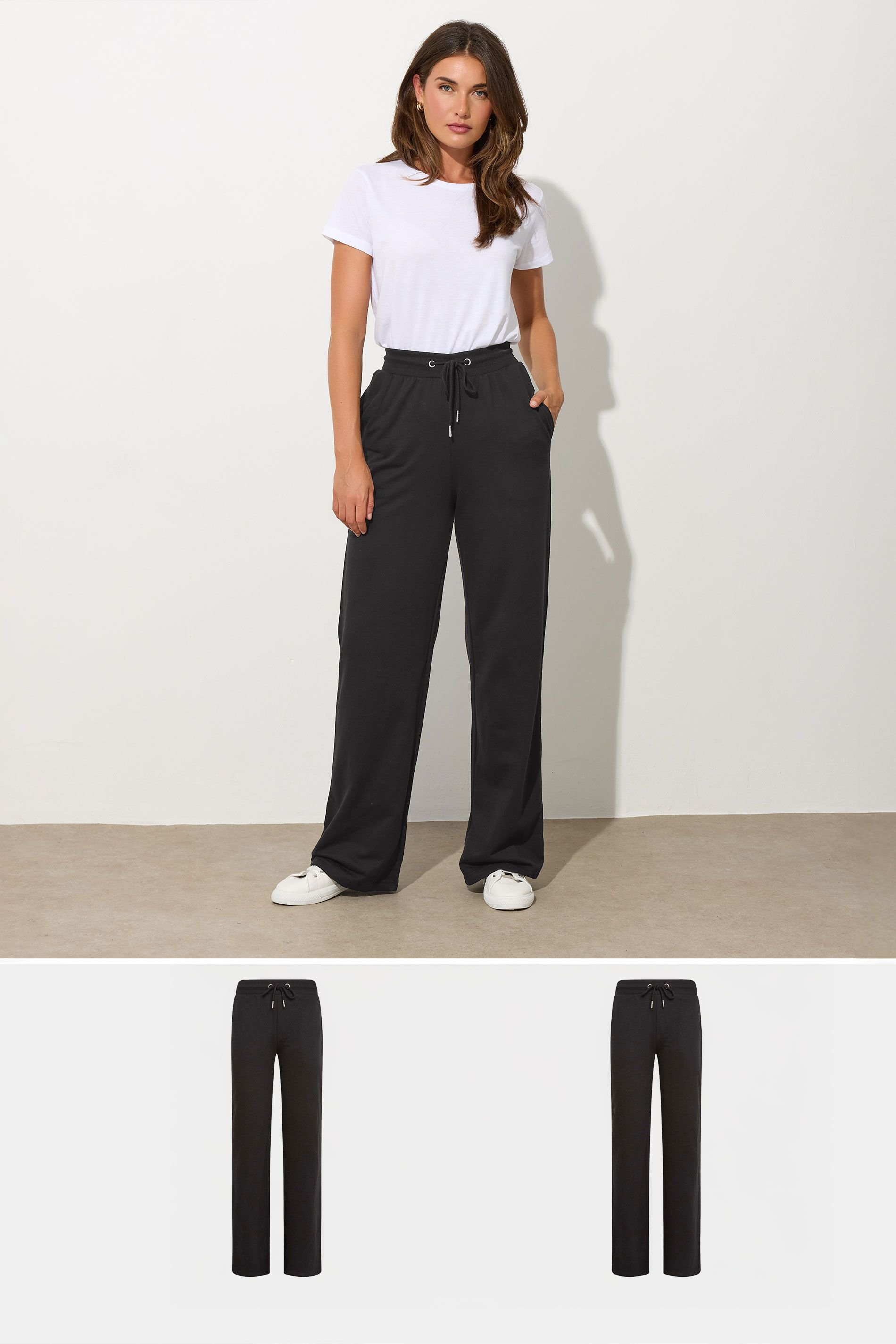 The Long Tall Sally Black Jersey Wide Leg Joggers 2 Pack is available in sizes 10, 12, 14, 16, 18, 20, 22-24, 8.