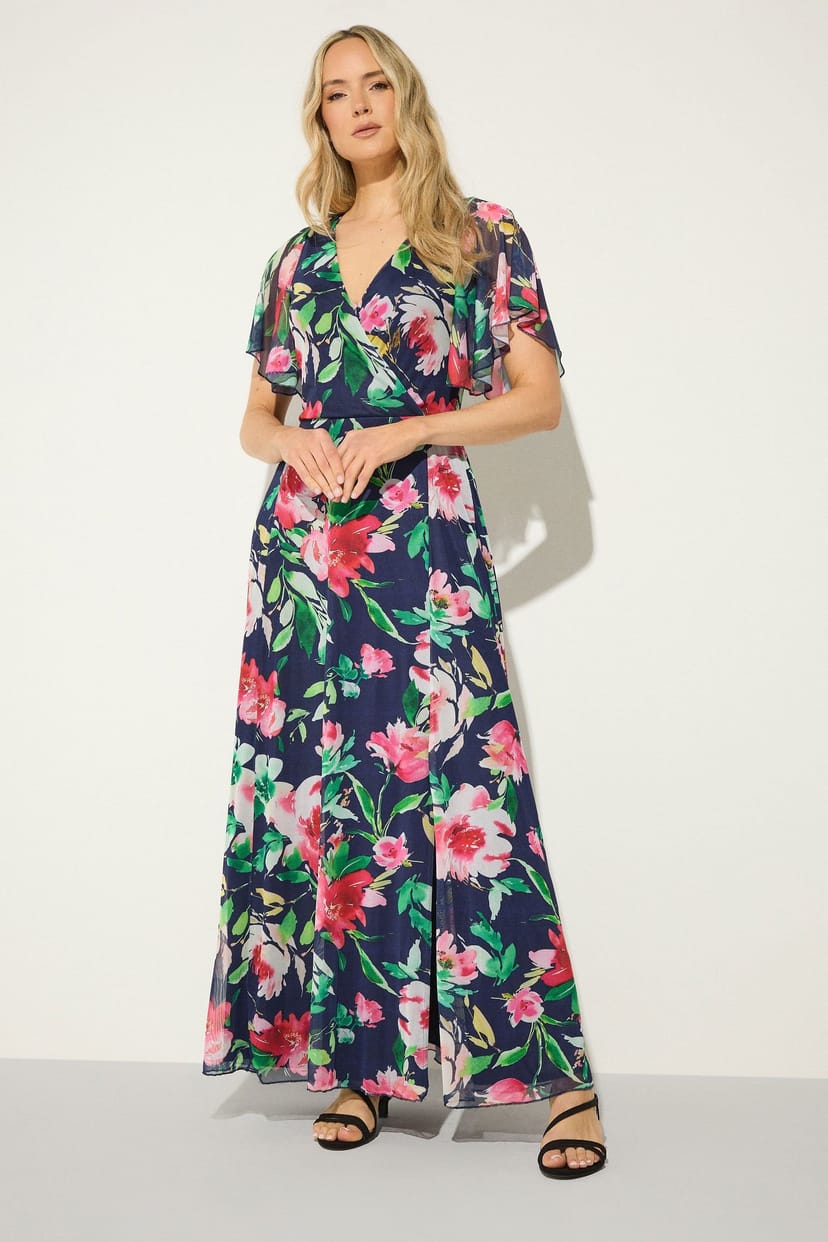 This maxi dress from Long Tall Sally is perfect for making an impression at your next event. Made from a soft jersey fabric, it features a mesh effect, an all-over floral print, and short flutter sleeves. Ideal for any occasion when styled with heels and refined accessories.