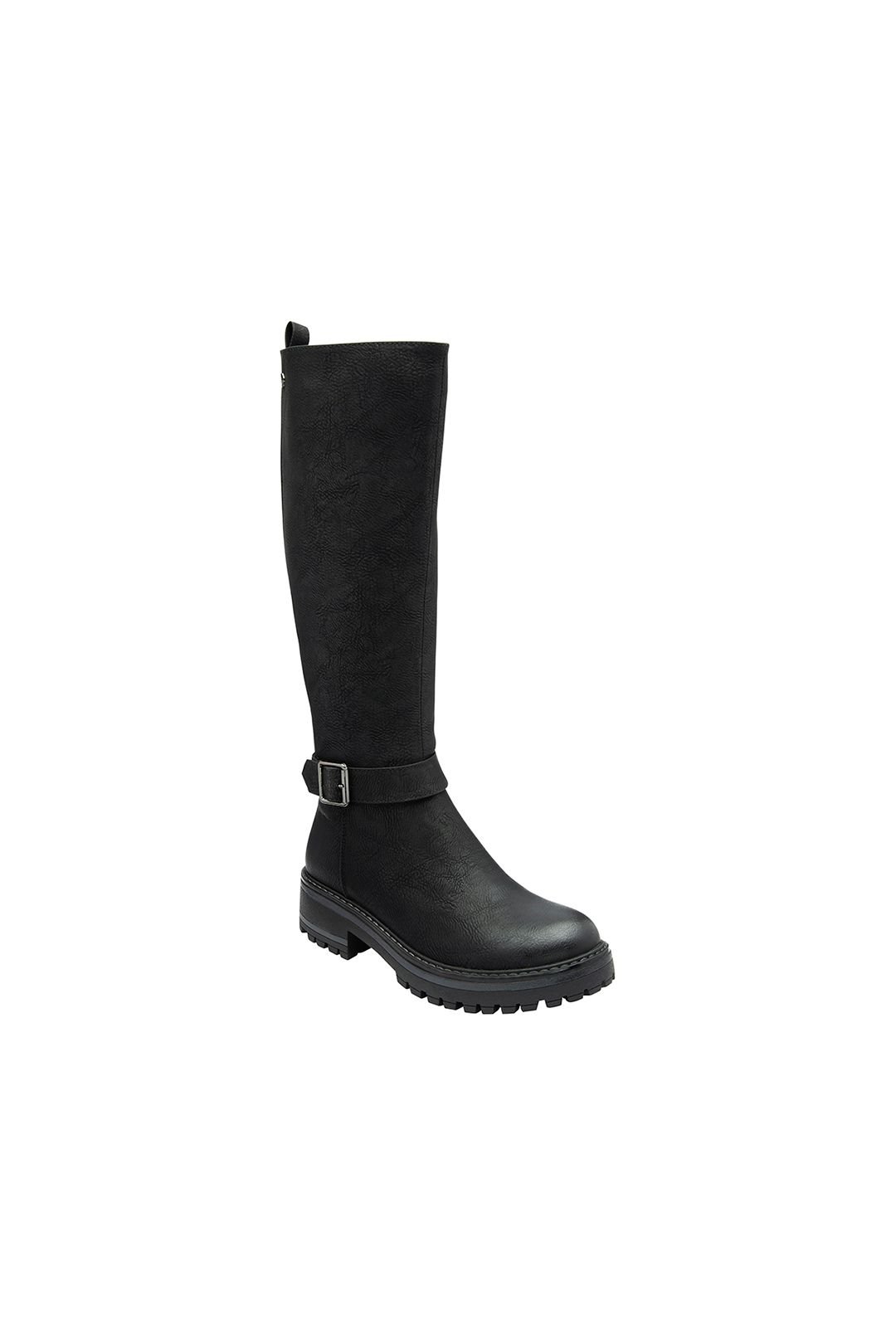 Channel an effortlessly cool vibe with the essential knee-high boots 'Devon' from Lotus. Understated, yet boasting an eye-catching wrap-around buckle detailing at the ankle for a touch of modern flair. The heavy cleated sole gives this versatile black boot a fashion-forward look that's perfect for any occasion.