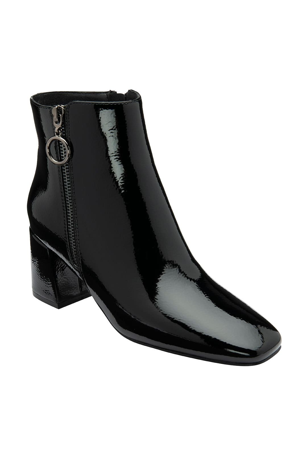 Shiny, stylish and easy to wear, these Lotus black patent ankle boots are made for women who love looking good and appreciate versatility from their footwear. The 6.5cm block heel offers all-day comfort, while the zip with ring pull makes slipping them on a breeze. Perfect teamed with jeans or a dress.