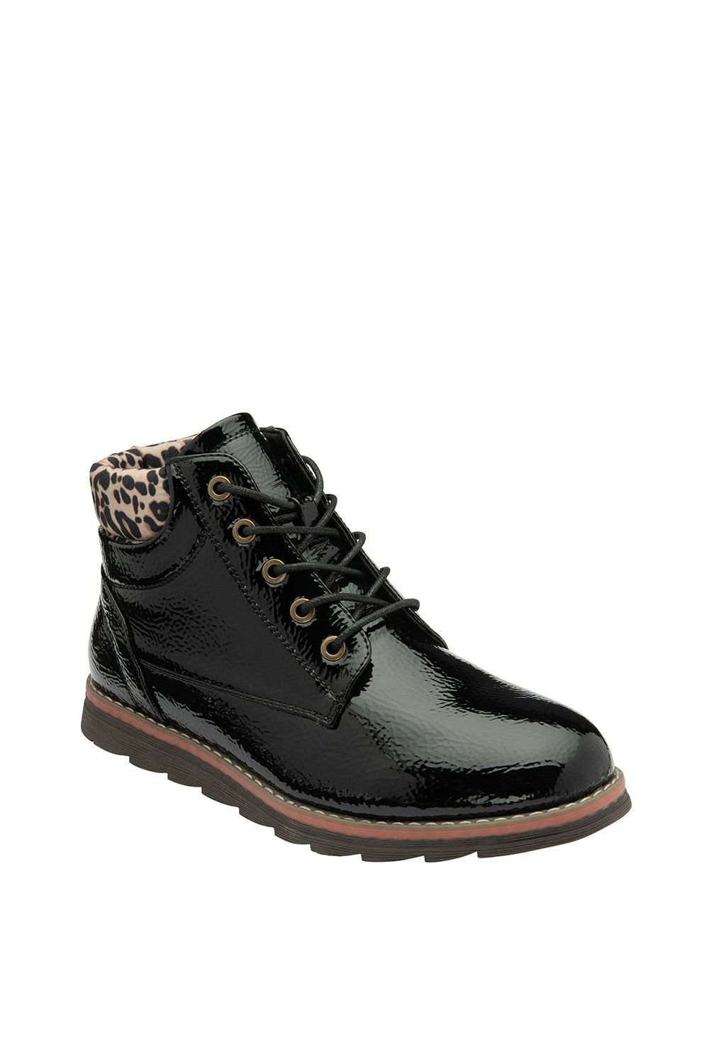 The Lotus Women's 'Lexis' Patent Flat Ankle Boots in Black is ideal for casual, everyday.