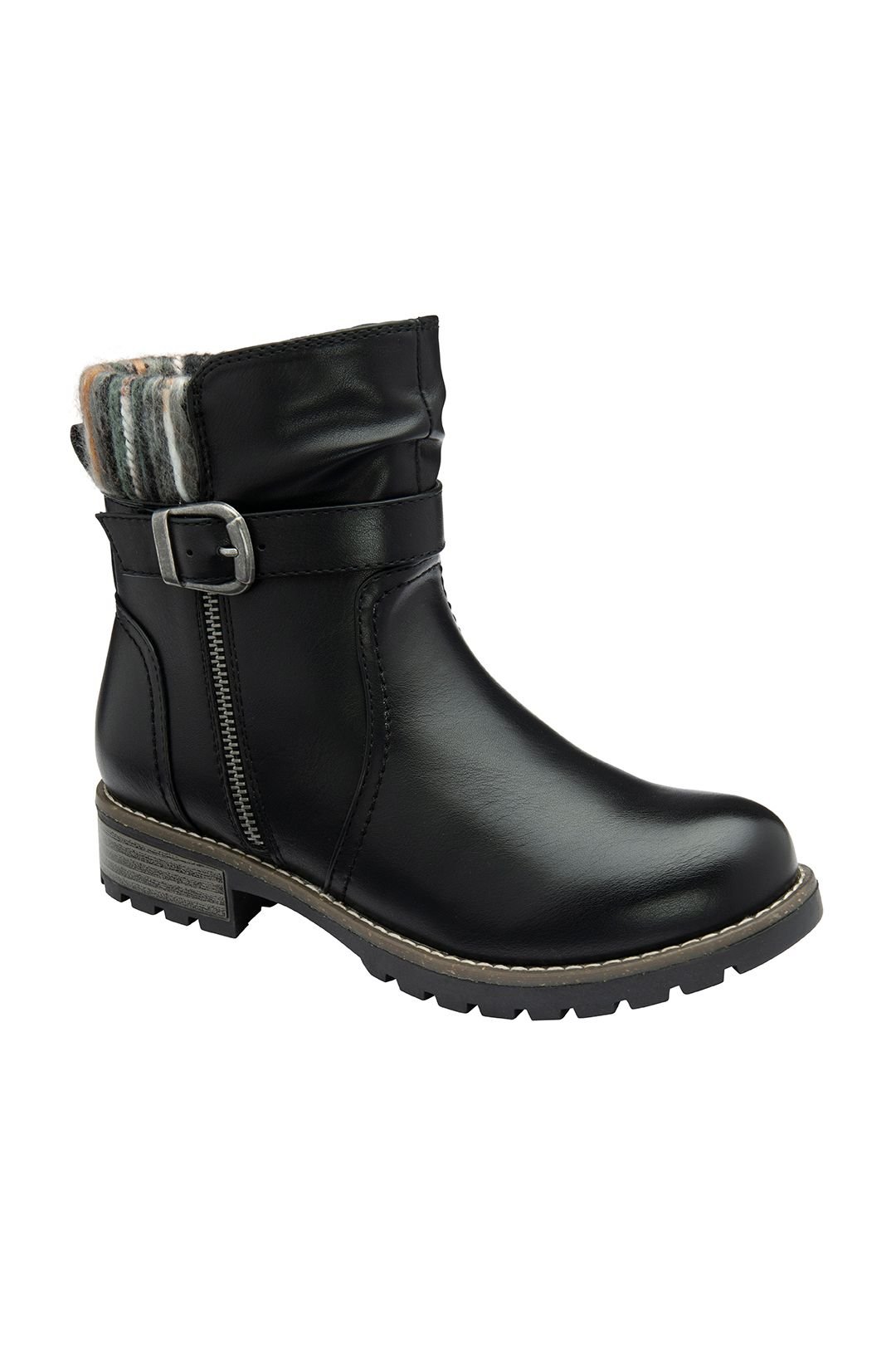 Chic and versatile Lotus 'Triana' ankle boots with a distinctive wrap-around buckle detail. The knitted top collar adds a fashionable textural contrast, while the functional zip detailing enhances their appeal. Perfect for adding an equestrian-inspired touch to any outfit.