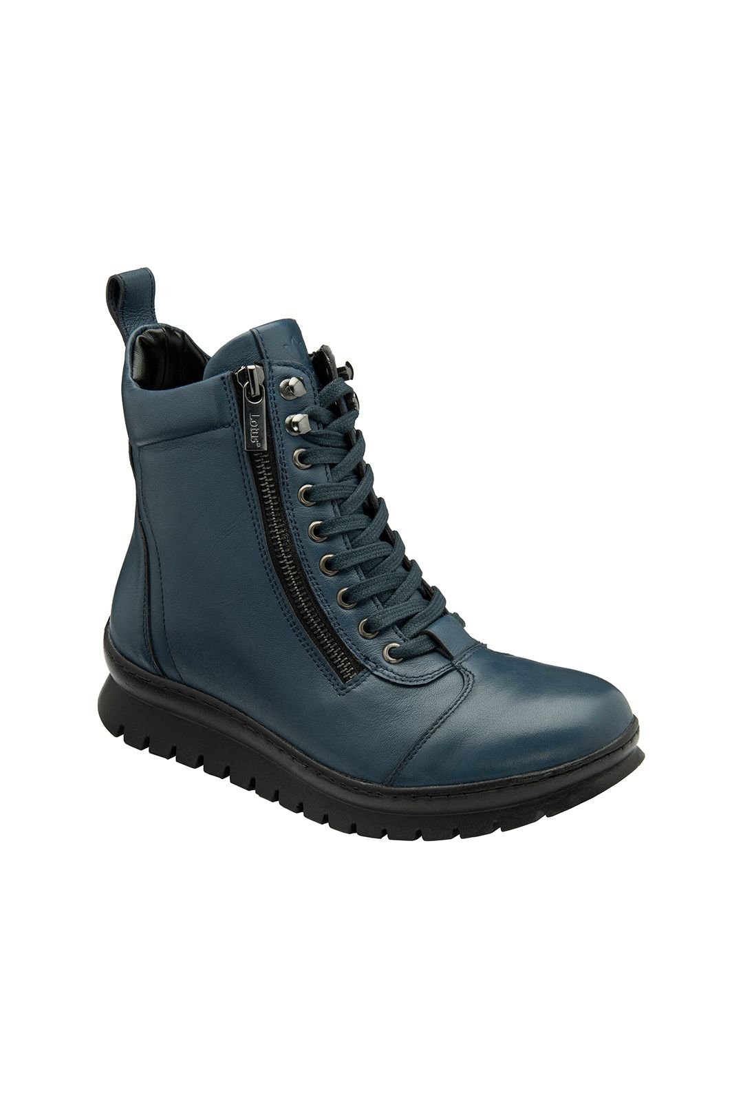 The Lotus Women's Blue Leather Zip-Up Ankle Boots is ideal for casual, everyday.