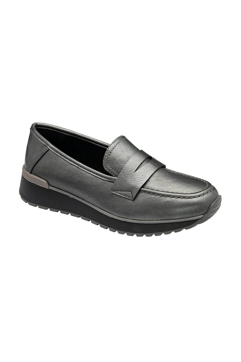 Stylish grey leather casual shoes by Lotus. Featuring a pull-on design with a single strap, these shoes rest on a 3cm wedge heel. Perfect for effortless, everyday wear.