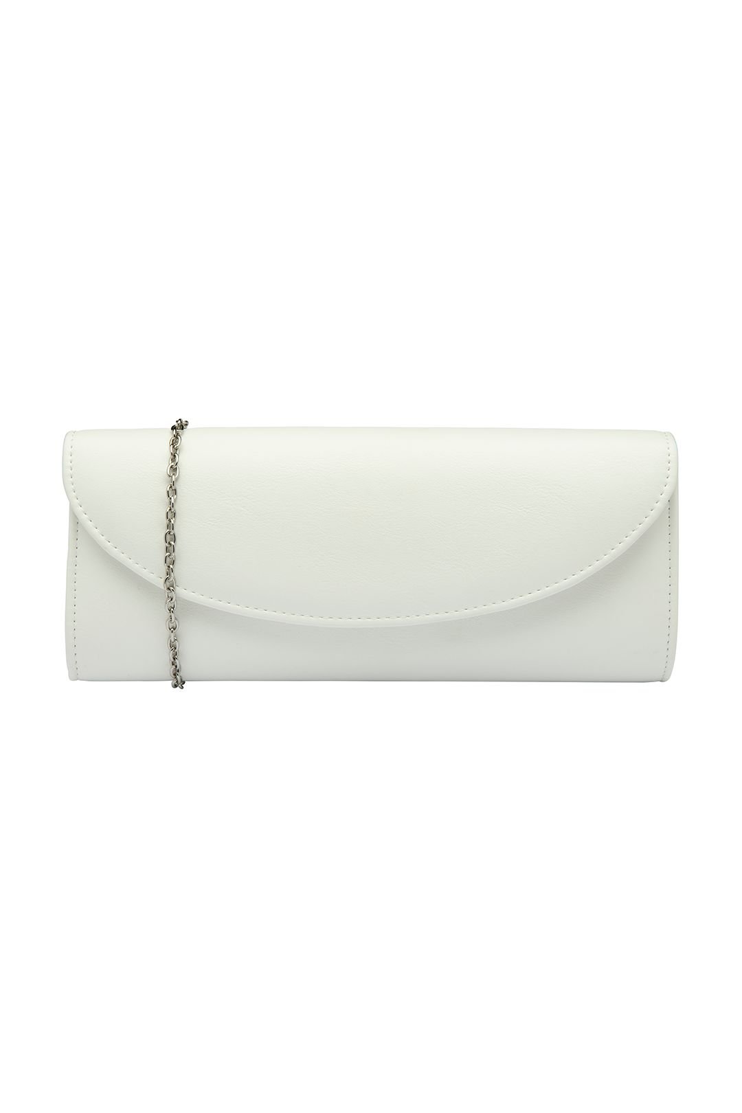 Stylish white leather-effect clutch bag with a magnetic fastening and a detachable chain shoulder strap. Perfect for special occasions.