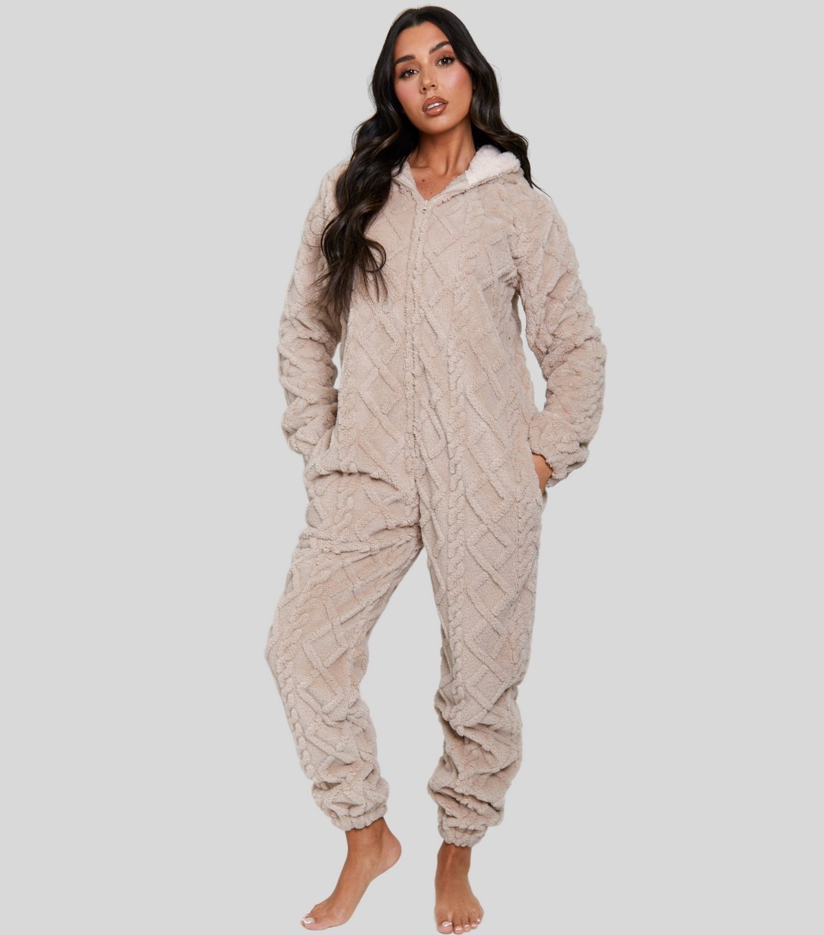The Loungeable Light Brown Cable Fleece Onesie is ideal for casual, home, relaxing.