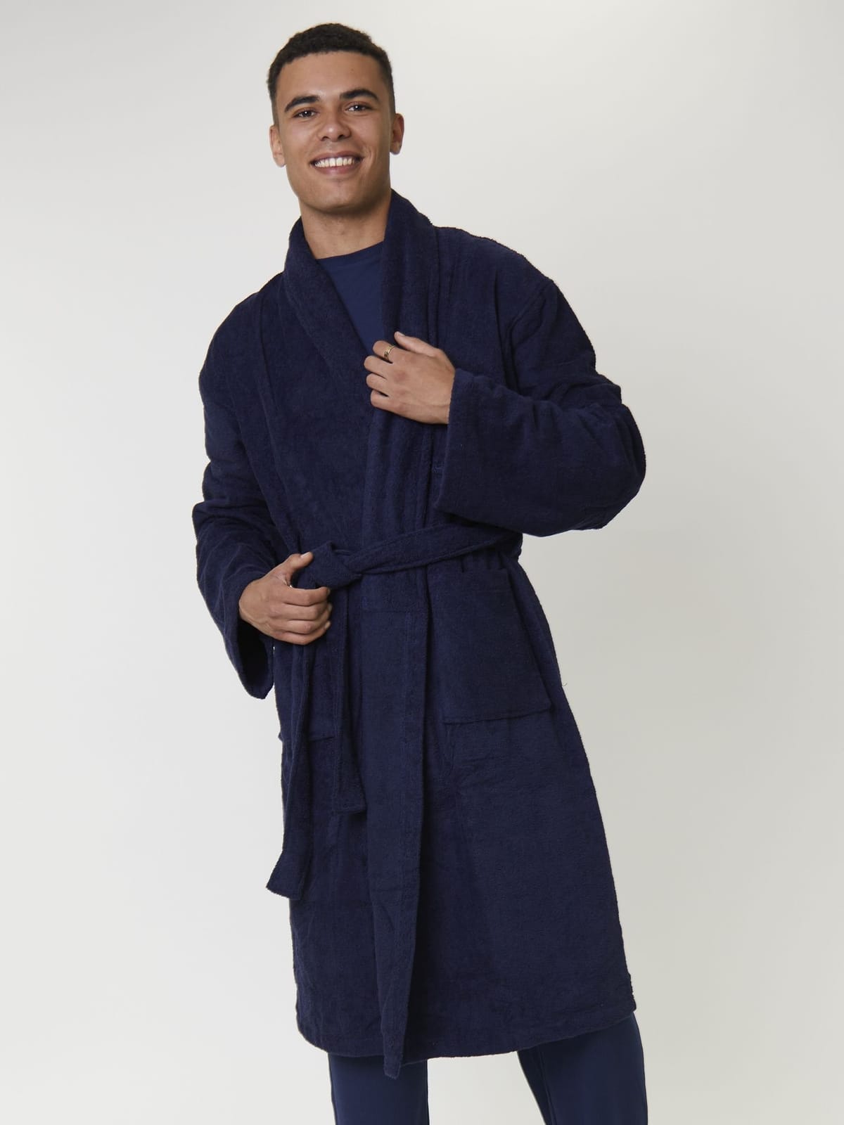 The Loungeable Navy Men's Classic Towelling Robe is available in sizes M, S.