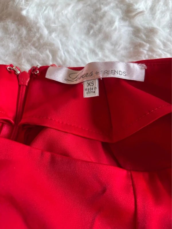 The Lovers & Friends Crimson Satin Wide Leg Trousers is available in sizes XS.