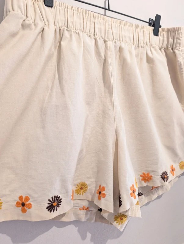 The Lucy & Yak Floral Embroidered Shorts in Cream is available in sizes L.