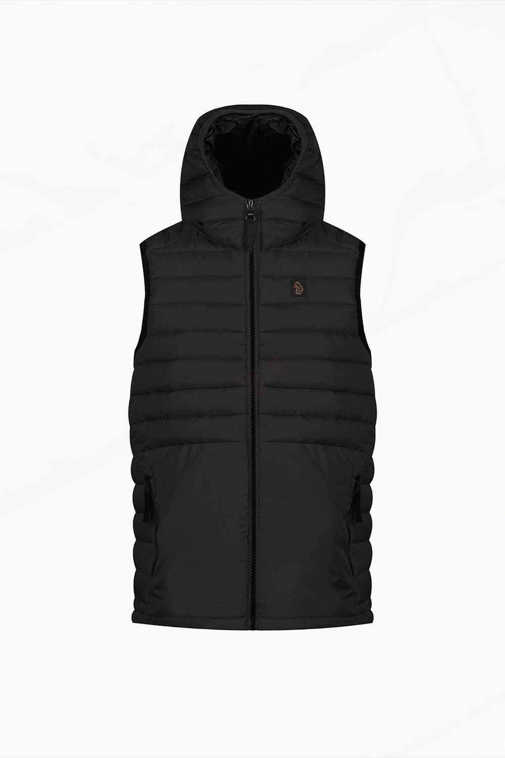 This season's defining layer from Luke 1977. This black padded gilet is fully lined and features a hood with dark pewter trims. It includes handy lower zip pockets, perfect for keeping essentials safe. The design is completed with a signature logo.