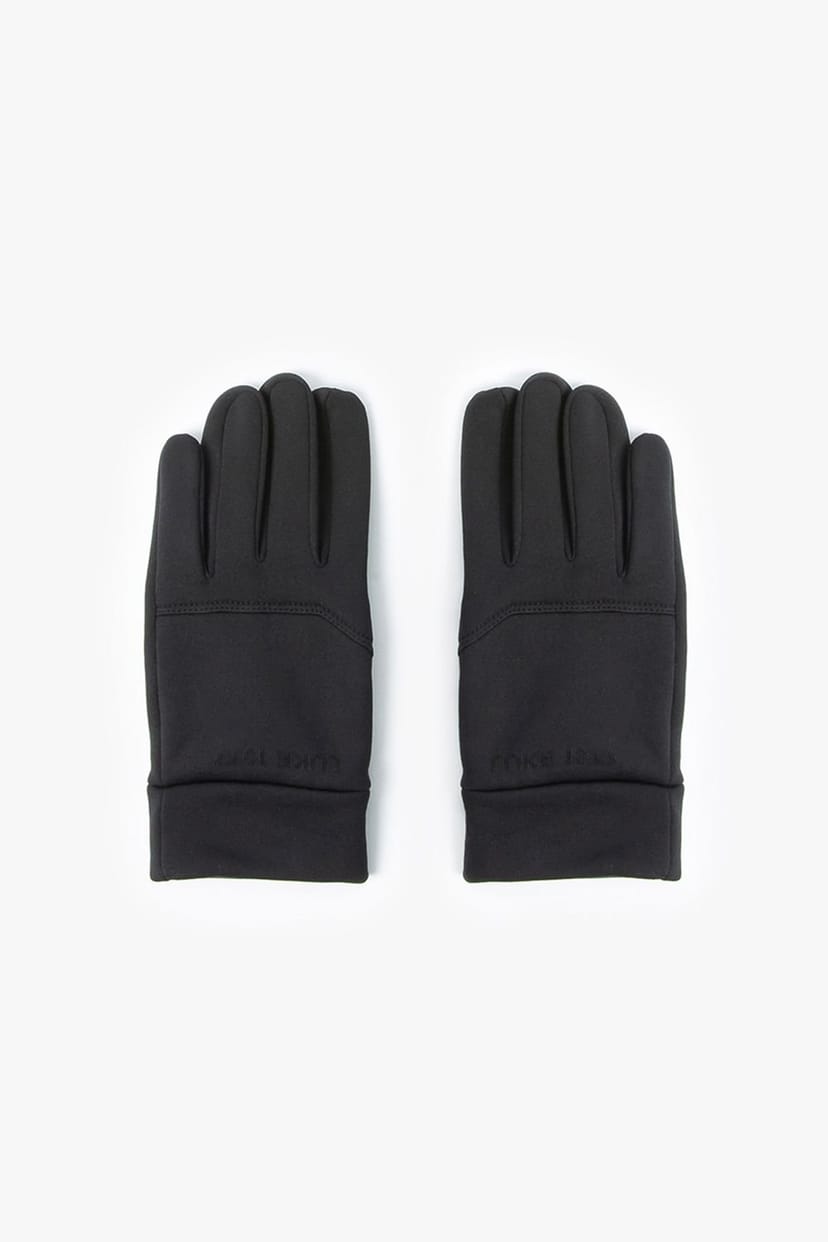 Sporty Luke 1977 Rimmer gloves in black. Crafted from a cosy fleece back fabric, these gloves feature touchscreen panels on the thumb and forefinger. The look is completed with a LUKE 1977 raised dot text print.