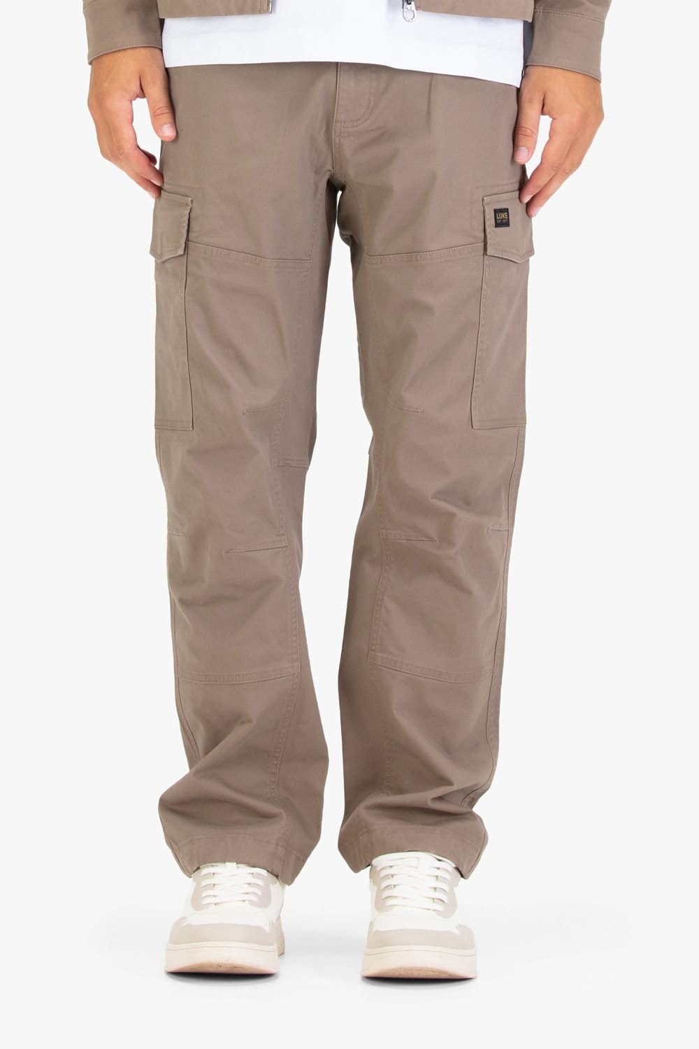 Utilitarian Luke 1977 cargo trousers in brown cotton twill. Featuring multiple pockets and belt loops for a perfect fit. Ideal for casual and outdoor wear.