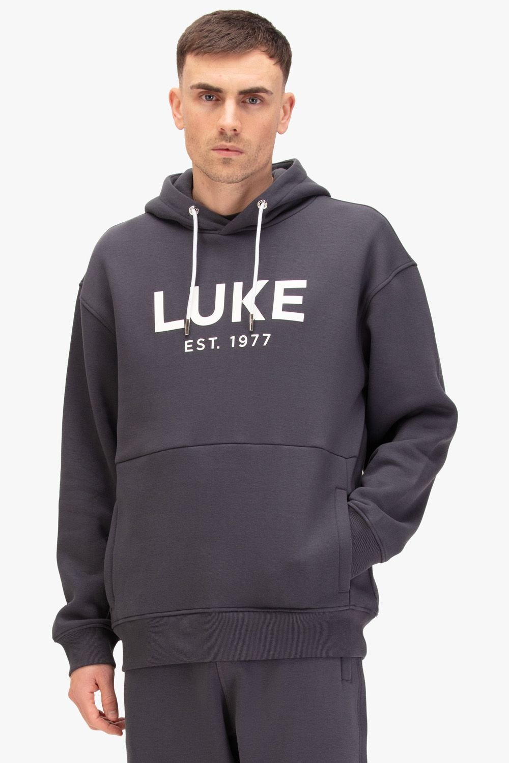 The Luke 1977 Men's Grand Hoodie in Charcoal is available in sizes 2XL, 3XL, 4XL, 5XL, L, M, S, XL.