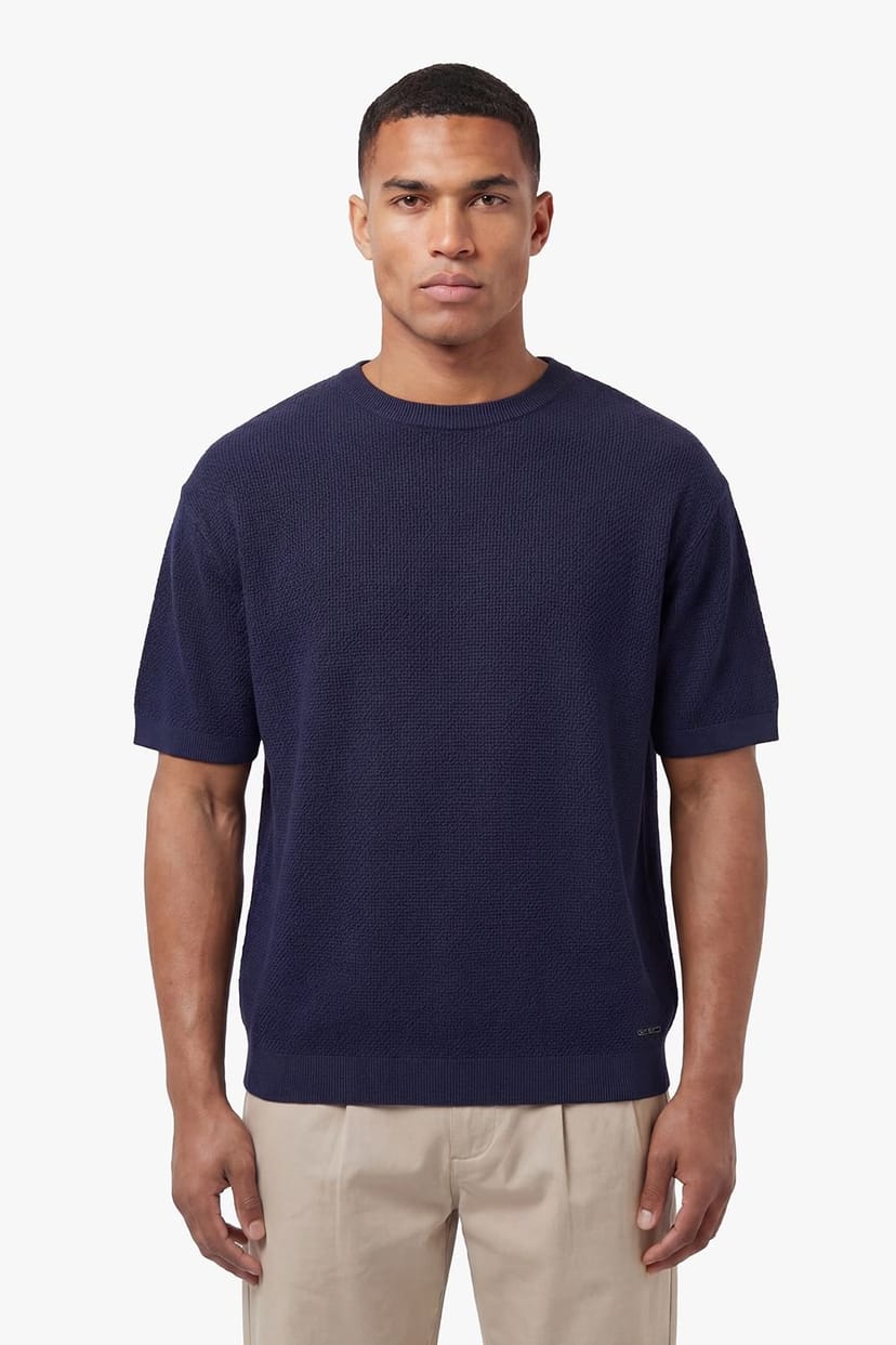The Luke 1977 Men's Dark Navy Relax Fit Knitted T-shirt is made from cotton, modal, metal.