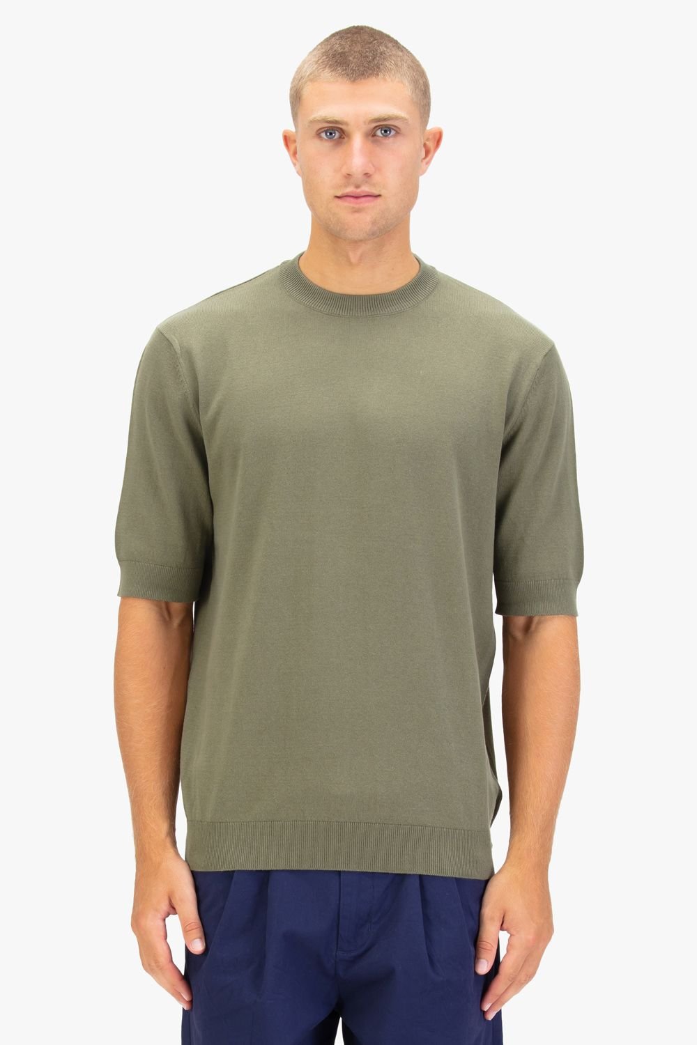 Stylish knitted t-shirt in green from LUKE 1977. Features a ribbed collar, cuff, and hem. Complete with the iconic LUKE 1977 bar on the left hem.