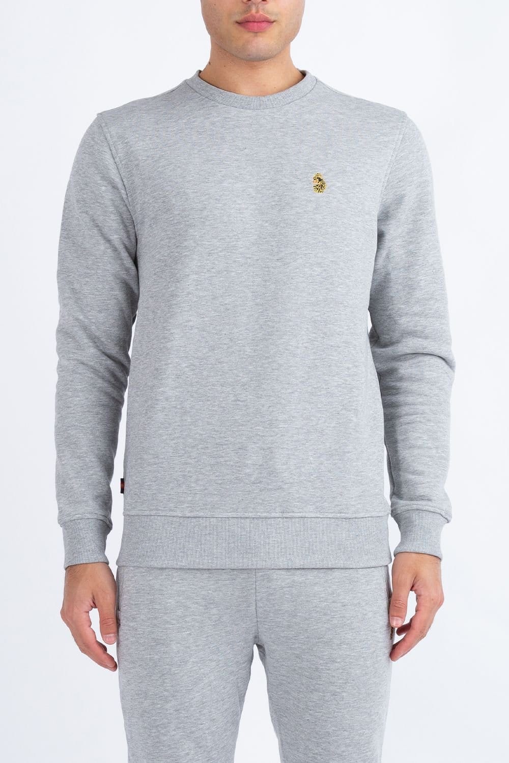 Stylish crew neck sweatshirt from LUKE 1977 in mid grey. Made from luxury cotton fleece, it features soft rib trims and the brand's iconic lion head embroidery on the left chest. Ideal for casual wear.