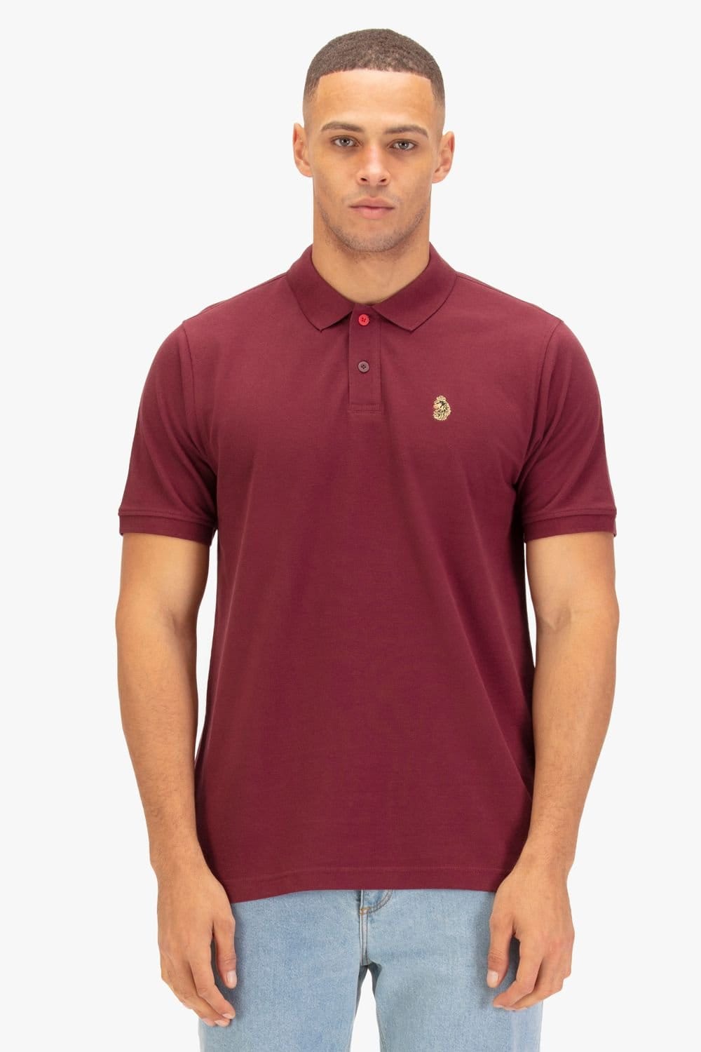 Sporty Luke 1977 polo shirt in red cotton with a classic button placket. Features two smoke buttons and one statement red top button. Complete with the brand's iconic lion embroidery on the left chest.