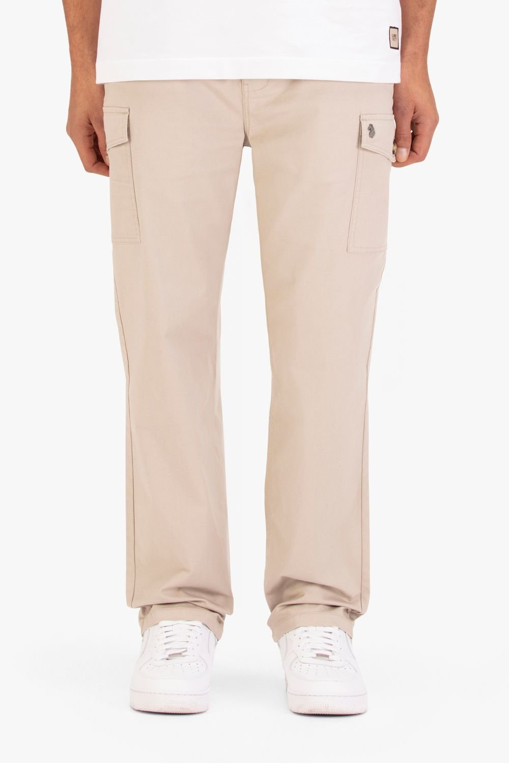 The Luke 1977 Men's Stone Relaxed Future Cargo Trousers is available in sizes 2XL, 3XL, L, M, S, XL, XS.