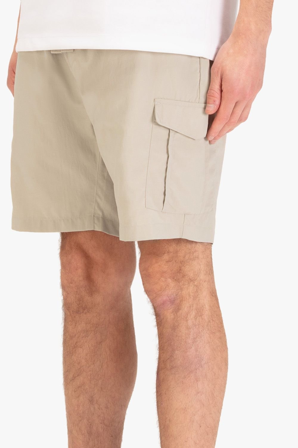 Lightweight technical cargo shorts in a stone colour. Made from soft washed Nylon, these shorts offer a regular fit with spacious utility leg pockets and a drawcord waist for a customised fit.