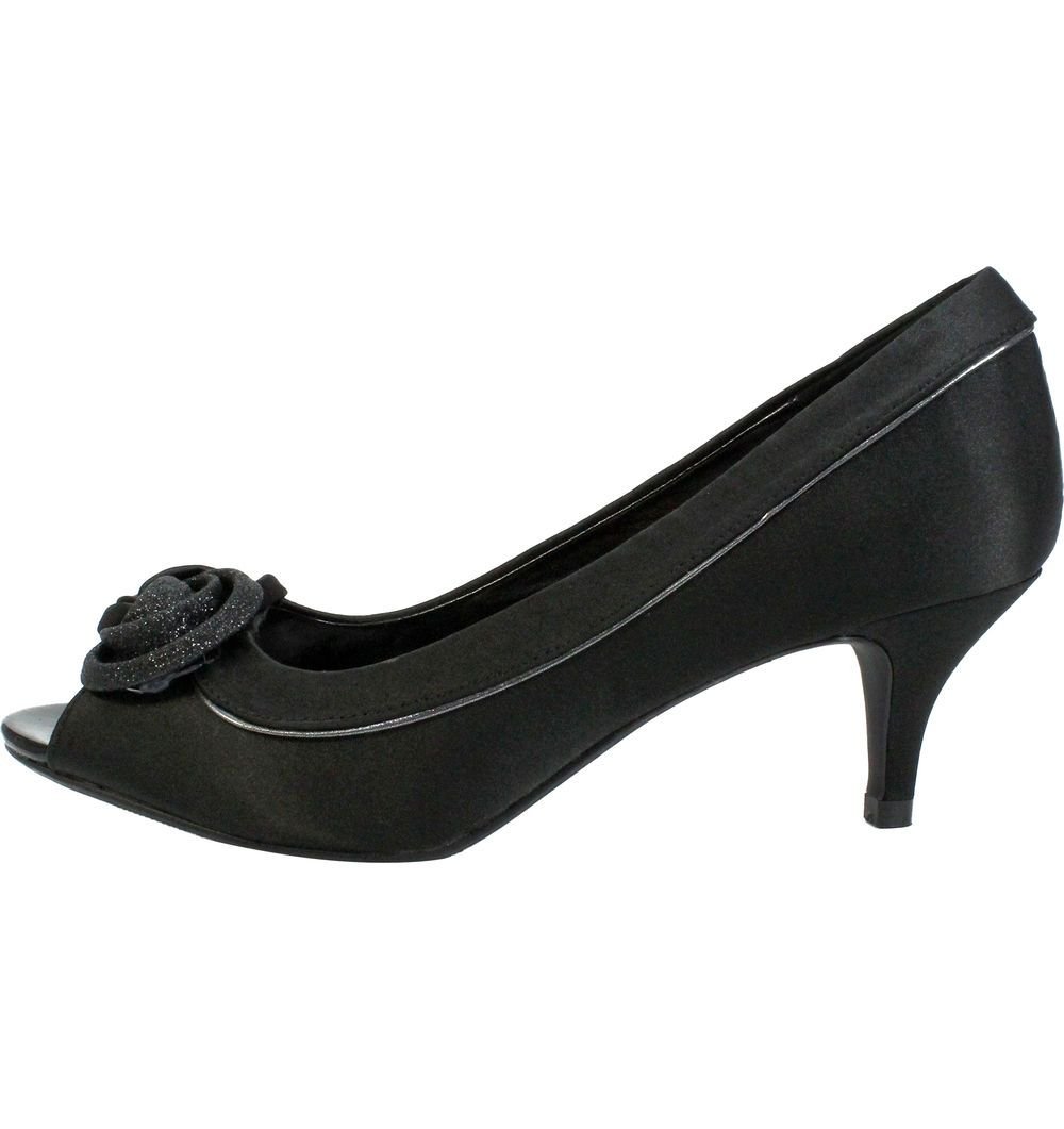 The Lunar Black Satin Court Shoes with Rose Corsage is ideal for evening, date-night, party.