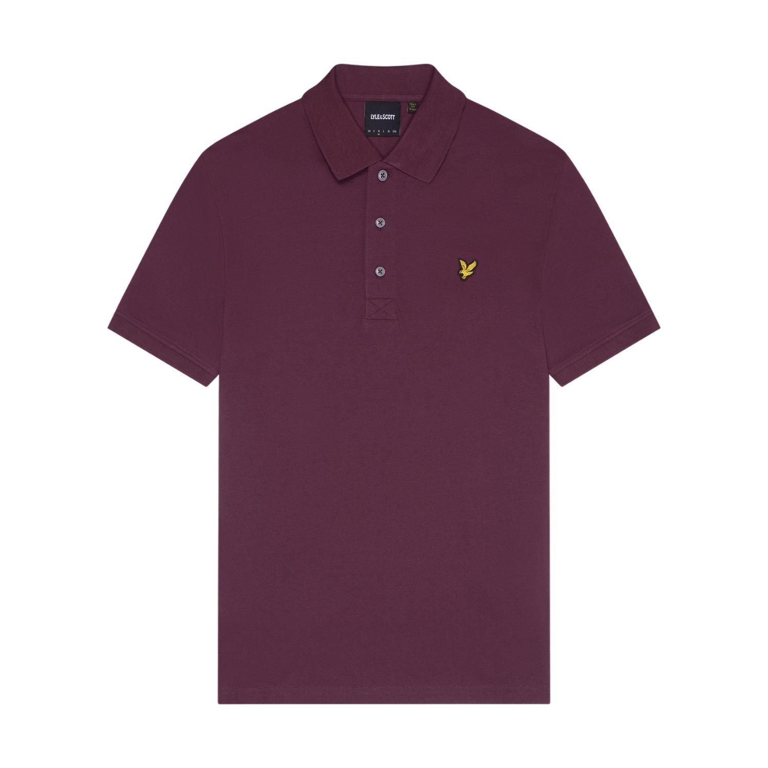 Stylish maroon polo shirt by Lyle & Scott made from 97% cotton and 3% elastane. Features a classic turn-down collar, short sleeves, and a three-button placket. Ideal for casual wear.