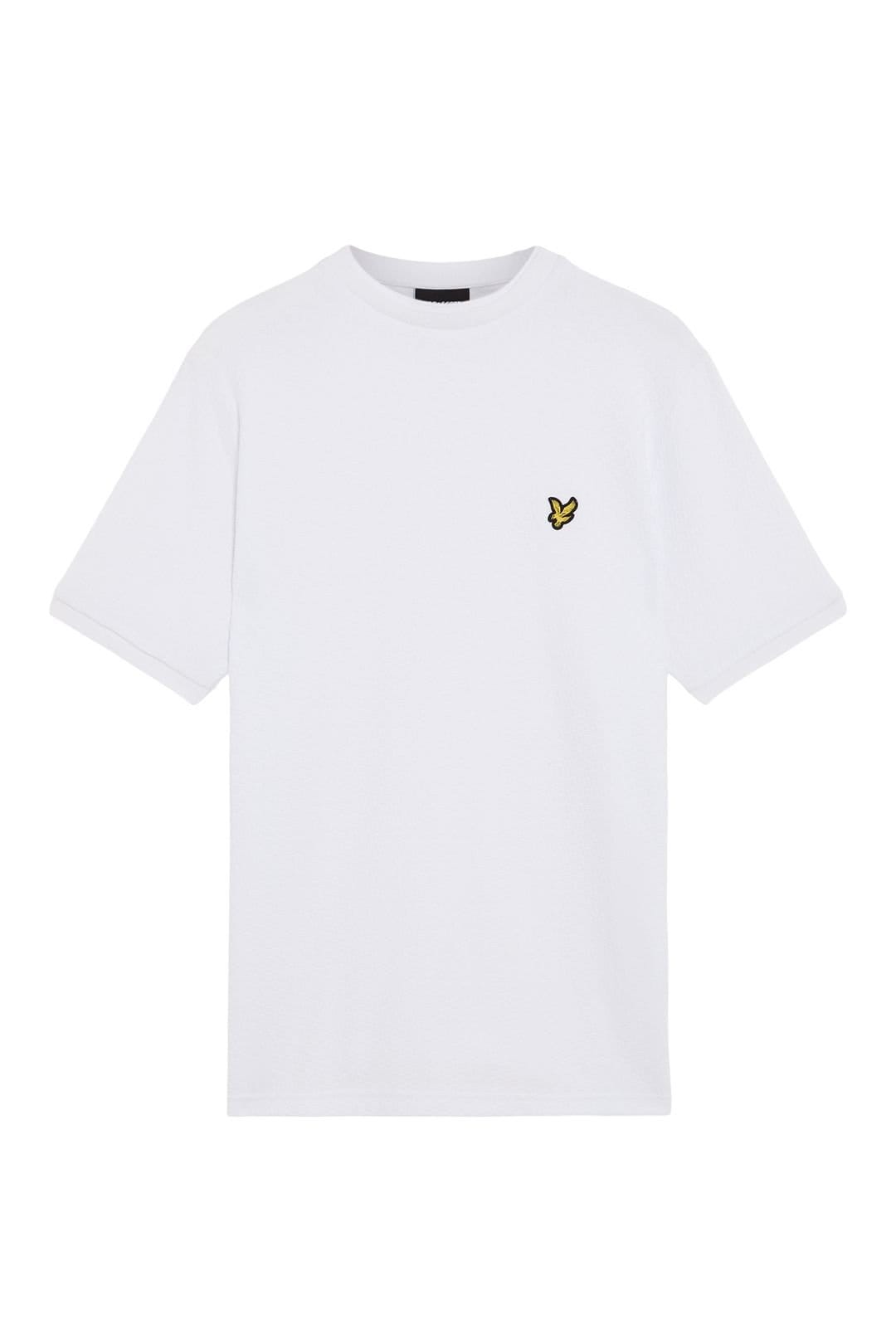 The Lyle & Scott Men's Football Jacquard T-Shirt White is made from cotton.