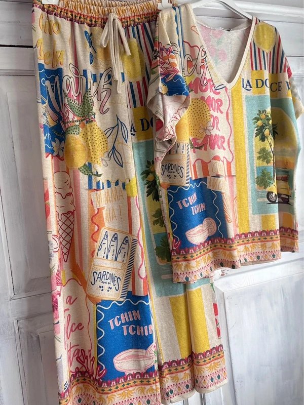 The M-Made Shimmering Lurex Short Sleeve Top and Trousers Set is ideal for beach, casual, weekend.
