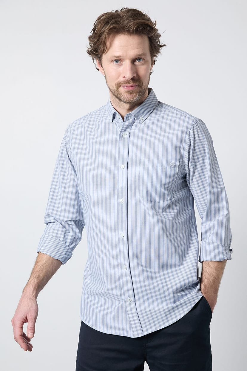 The Maine Men's Blue Stripe Long Sleeve Shirt is ideal for casual, work, evening.