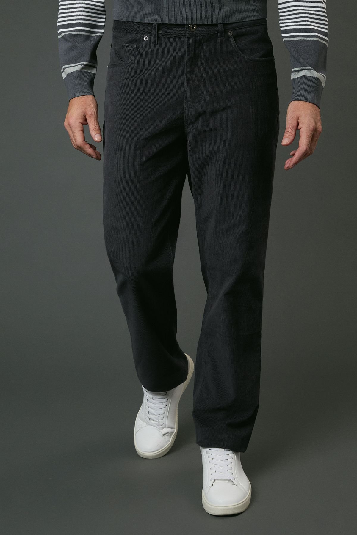 The Maine Men's Dark Grey Corduroy Straight Fit Trousers is available in sizes 36R, 38R, 40R, 42R.