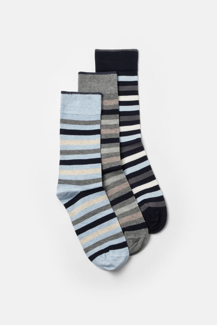 Set of three pairs of knitted socks featuring classic stripe patterns in complementary tones. Comfortable ribbed cuffs to keep socks securely in place throughout the day. Soft knitted fabric provides all-day comfort.