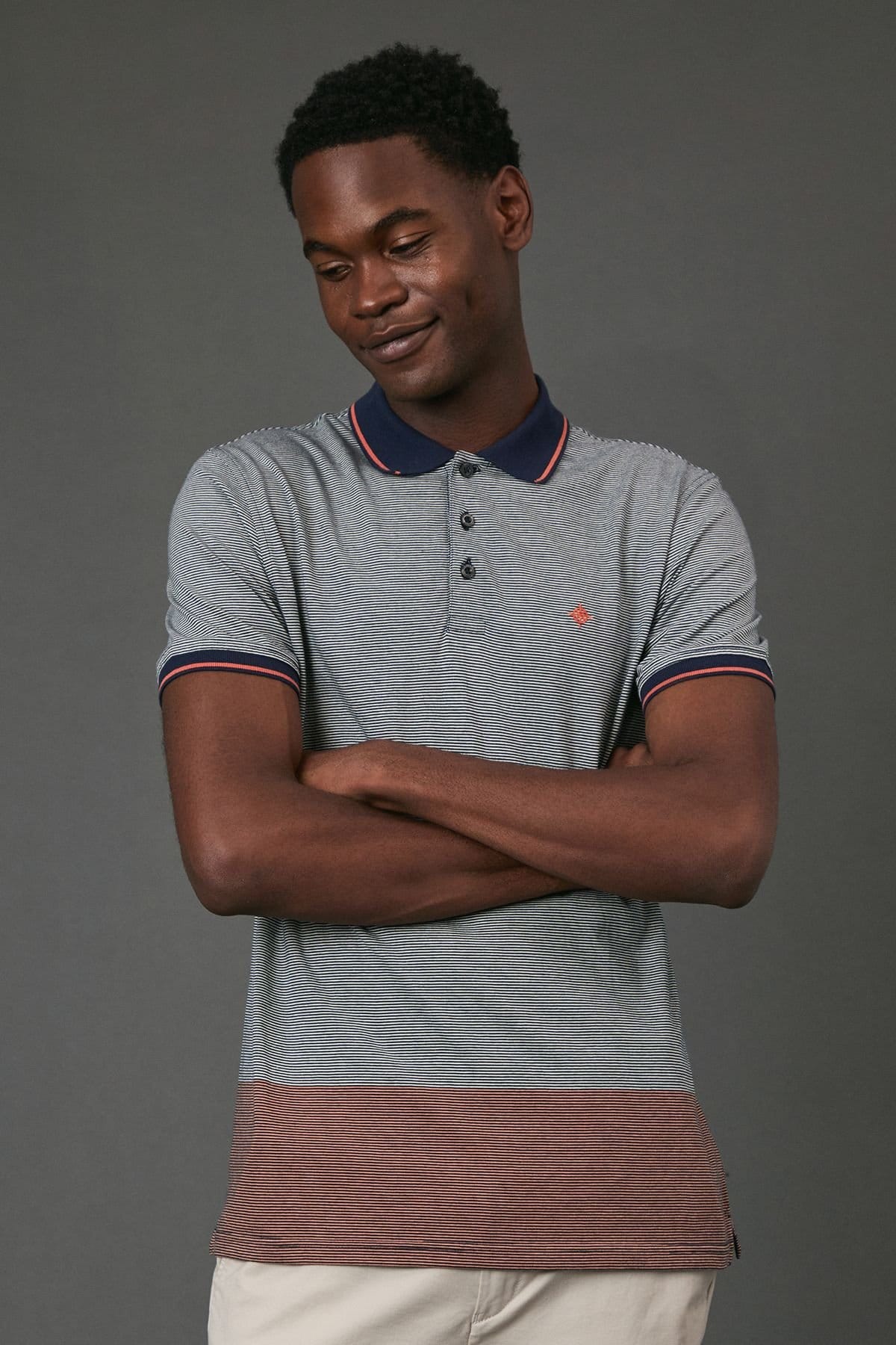 The Maine Men's Navy Engineered Stripe Polo Shirt is ideal for casual, everyday, smart-casual.