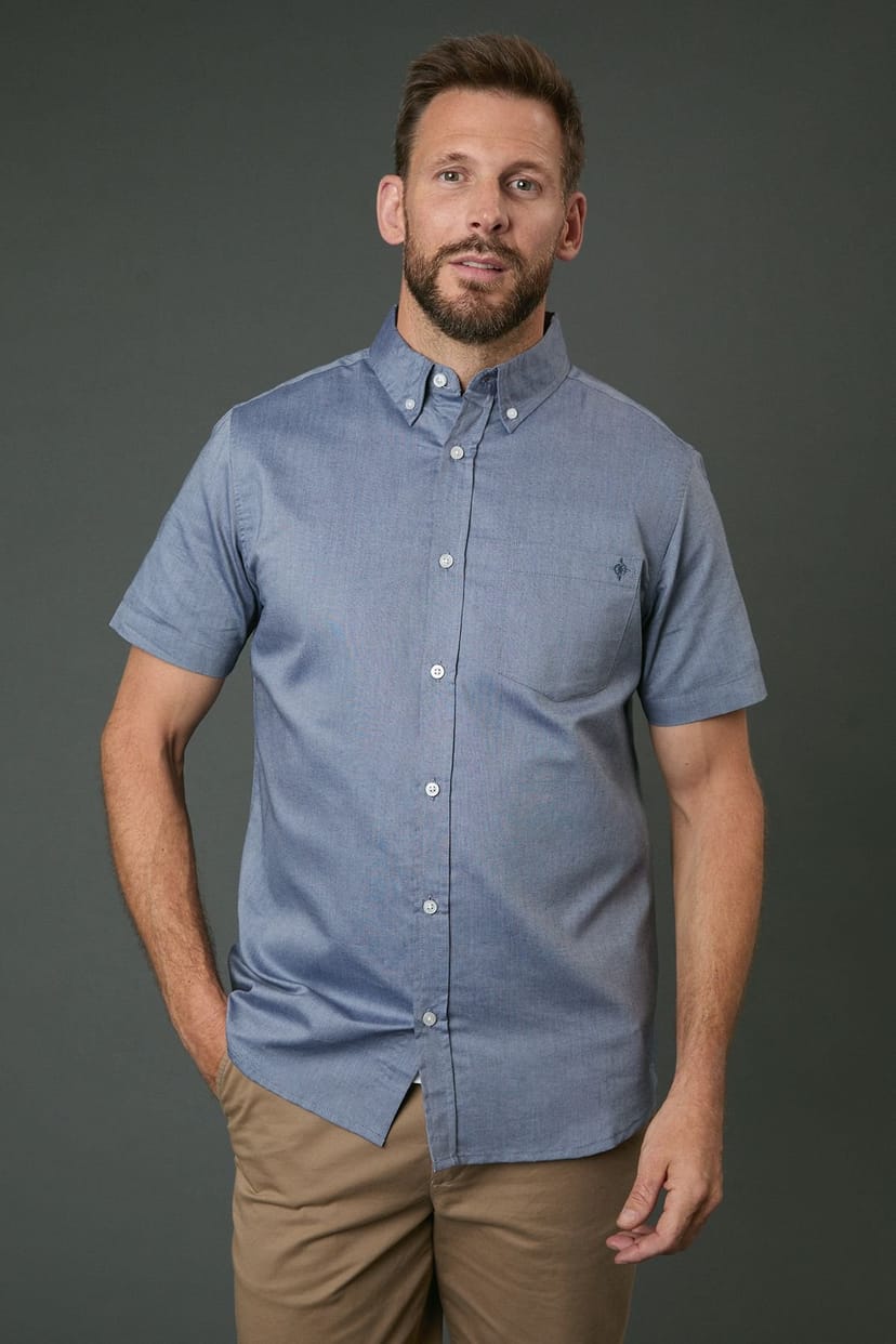 The Maine Men's Navy Oxford Short Sleeve Shirt is ideal for casual, smart-casual, work.