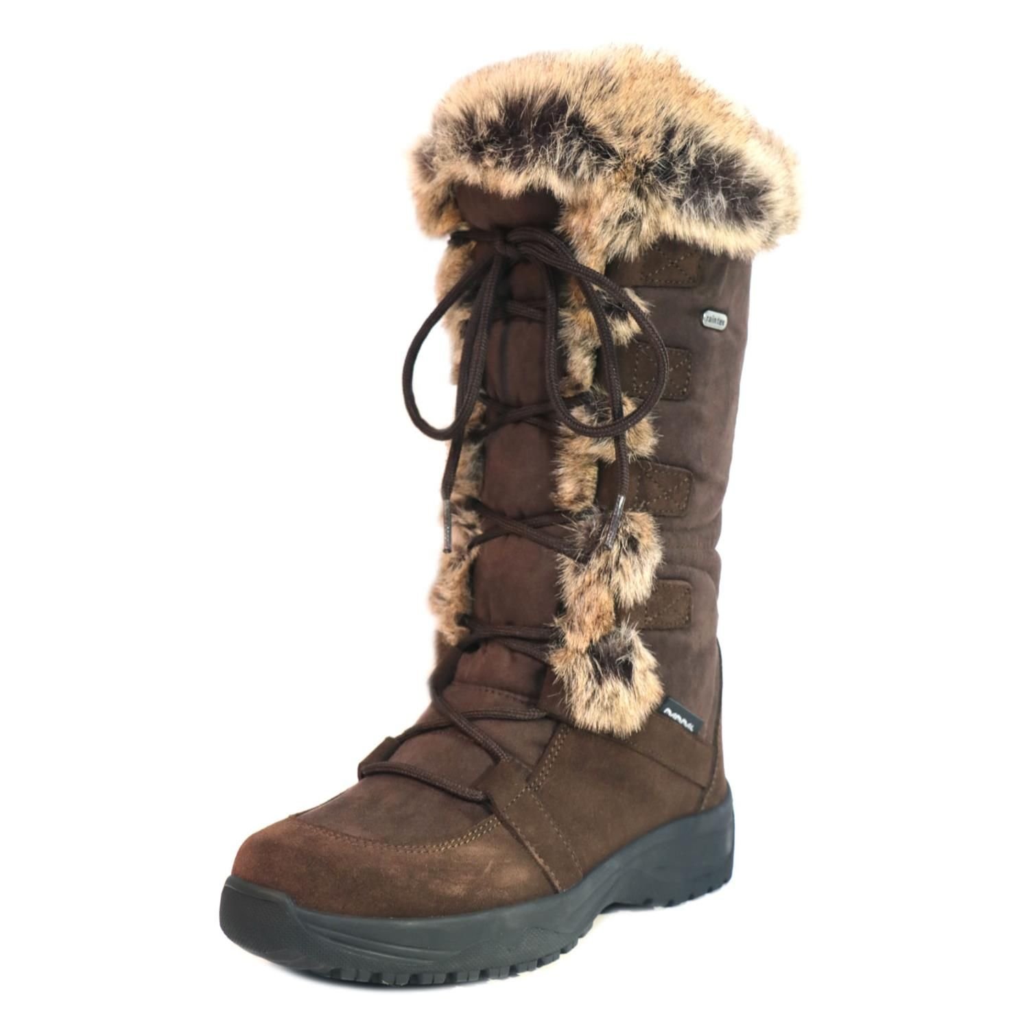 The Mammal Brown Full Length Winter Boots with Fur Trim is made from fleece, rubber, suede.