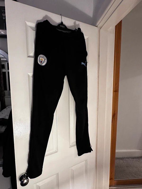 The Manchester City Black Polyester Training Pants is available in sizes S.