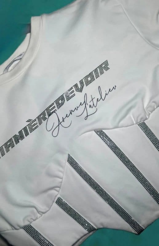 The Maniere De Voir White Diamante Crop Top is ideal for casual, evening.