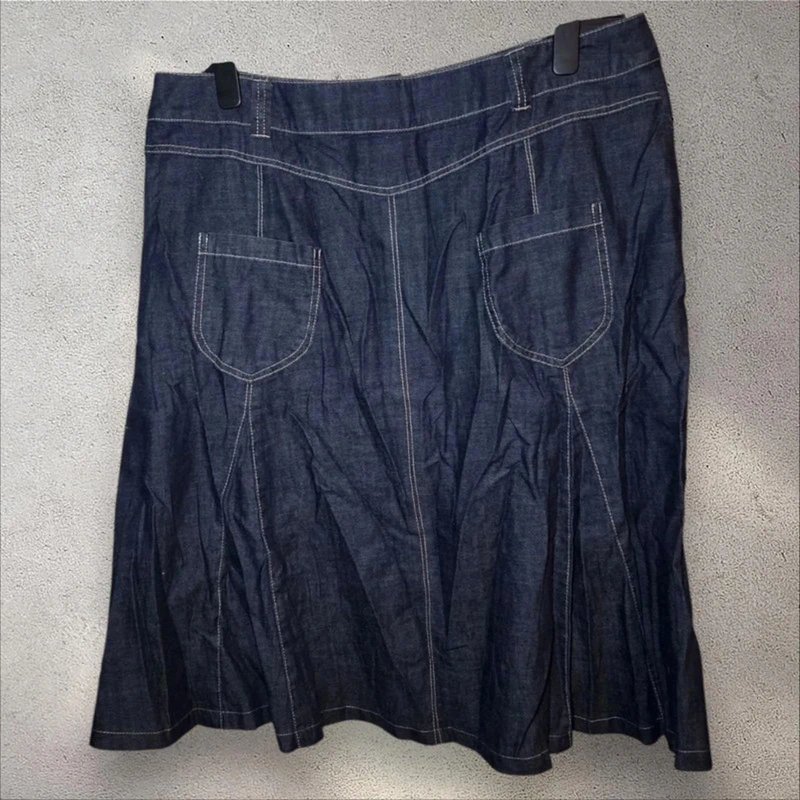 The Marks & Spencer Blue Denim A-Line Button Skirt is available in sizes XL.