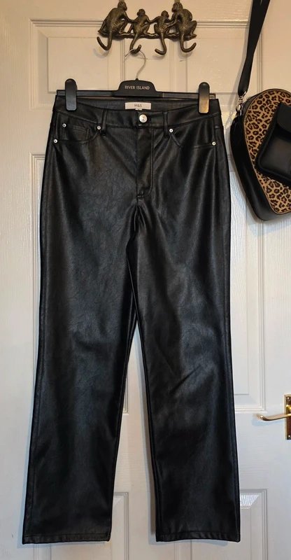 The Marks & Spencer High Waisted Faux Leather Trousers is available in sizes S.