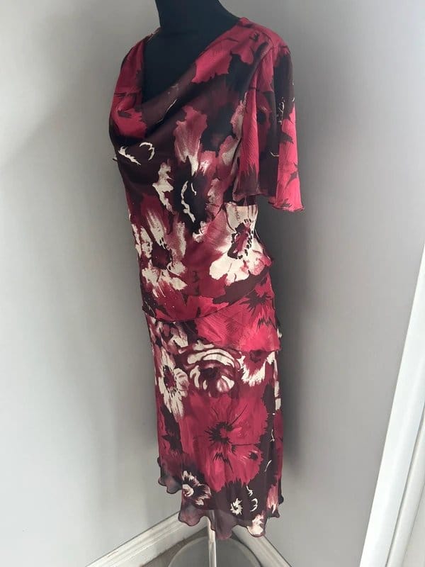 “Pair with red strappy heels and a clutch bag for a chic evening look.”