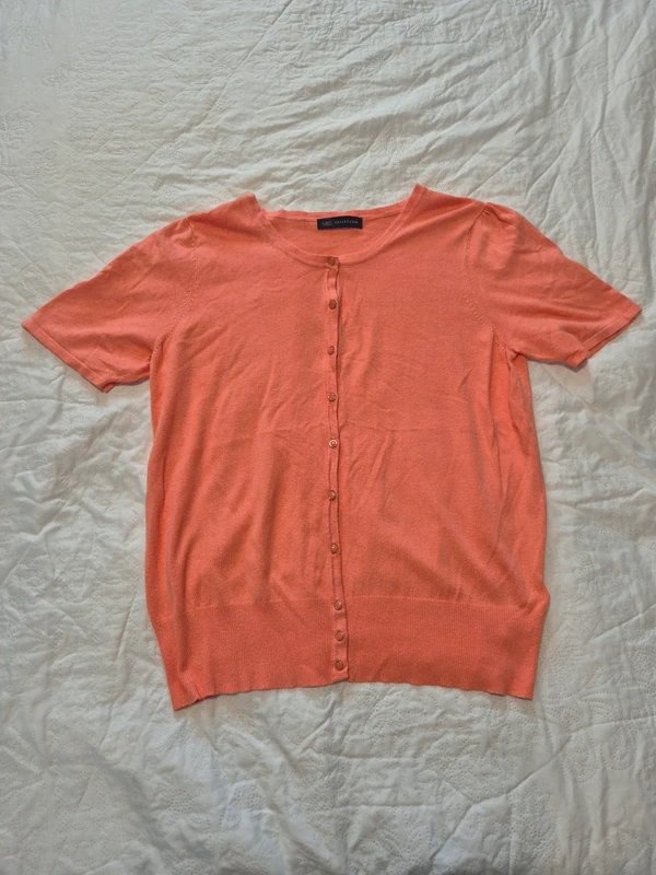 The Marks & Spencer Orange Short Sleeve Cardigan in Size 16 is available in sizes L.