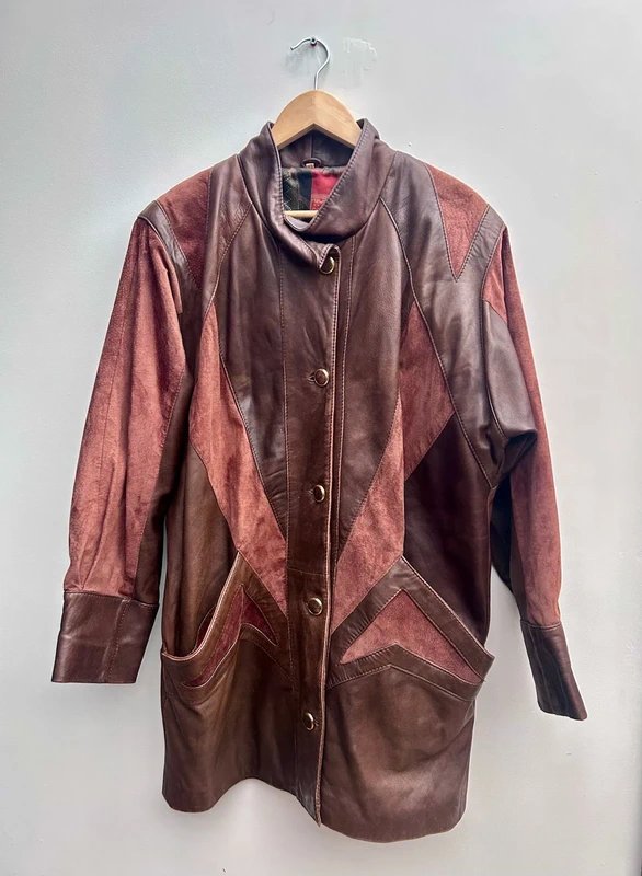The marvik Vintage 80s 90s Leather Coat in Brown is available in sizes L.