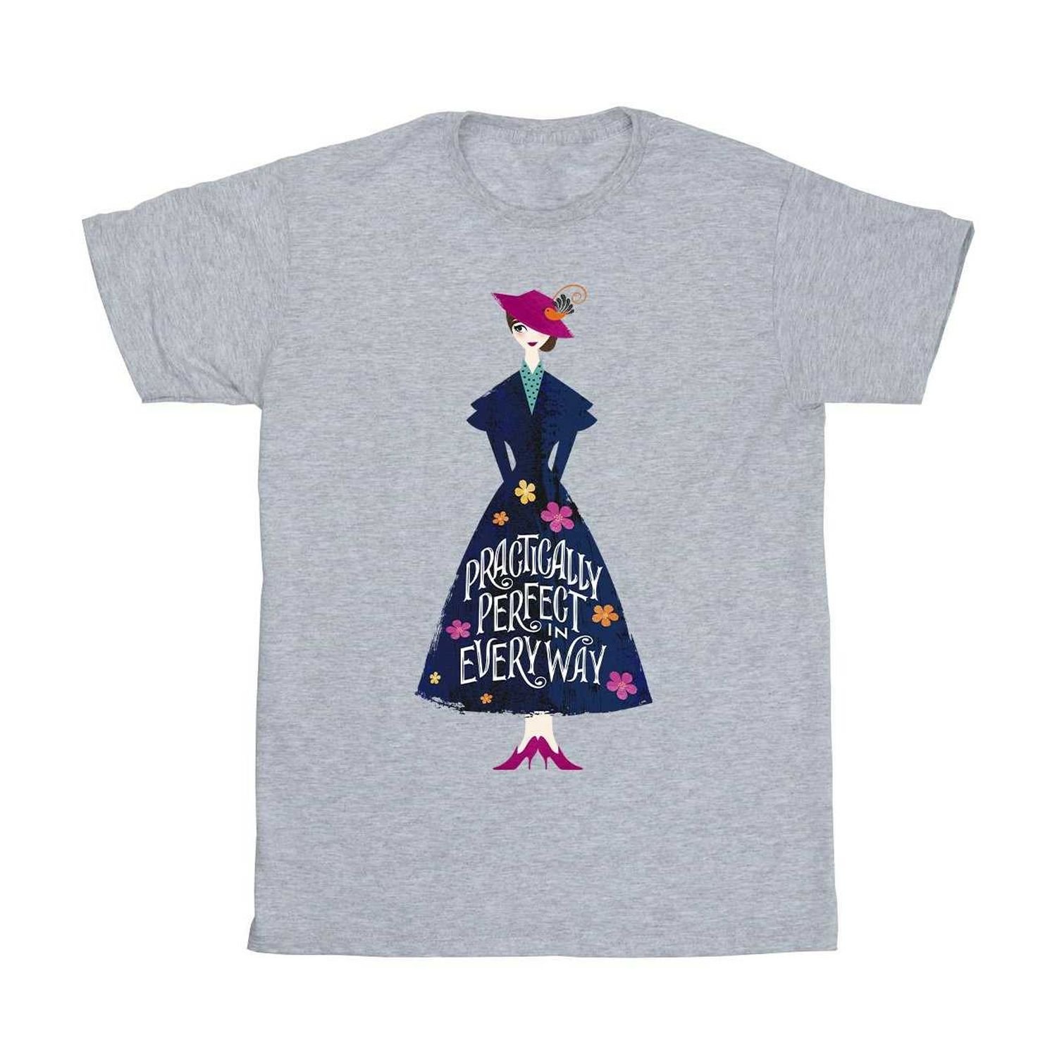 This grey cotton t-shirt features a charming Mary Poppins print with a quote. Made from 90% cotton and 10% polyester, it offers a soft touch and midweight feel. Ideal for casual wear.
