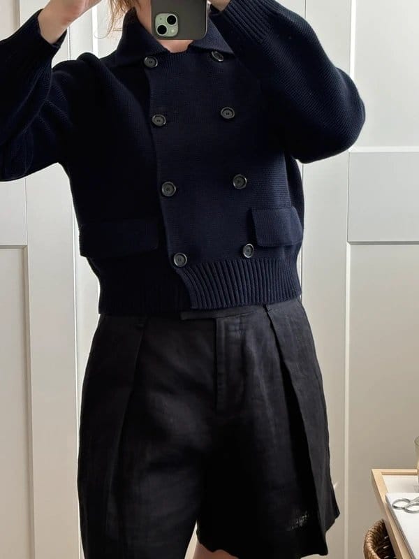 The Massimo Dutti Navy Chunky Cardigan with Asymmetric Buttons is available in sizes S.