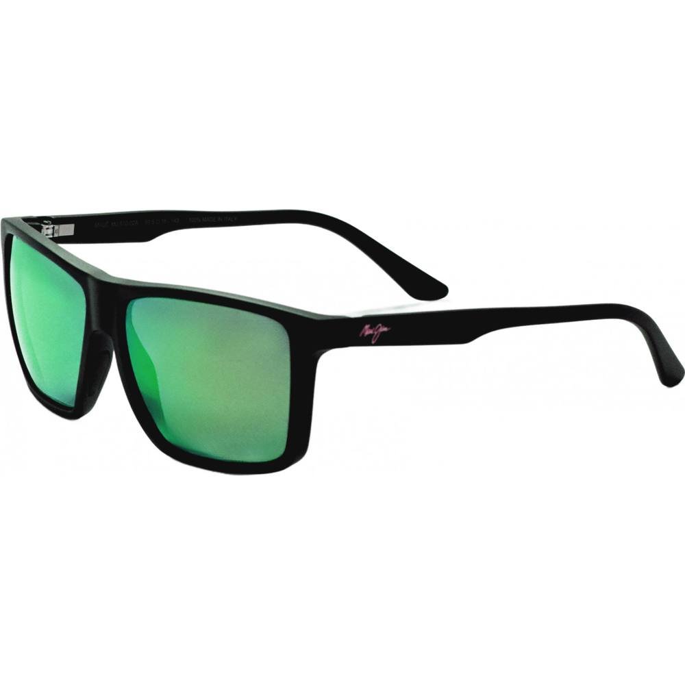 Stylish Maui Jim sunglasses in a square/rectangle shape with black frames and green lenses. Designed for durability and comfort, perfect for outdoor activities.
