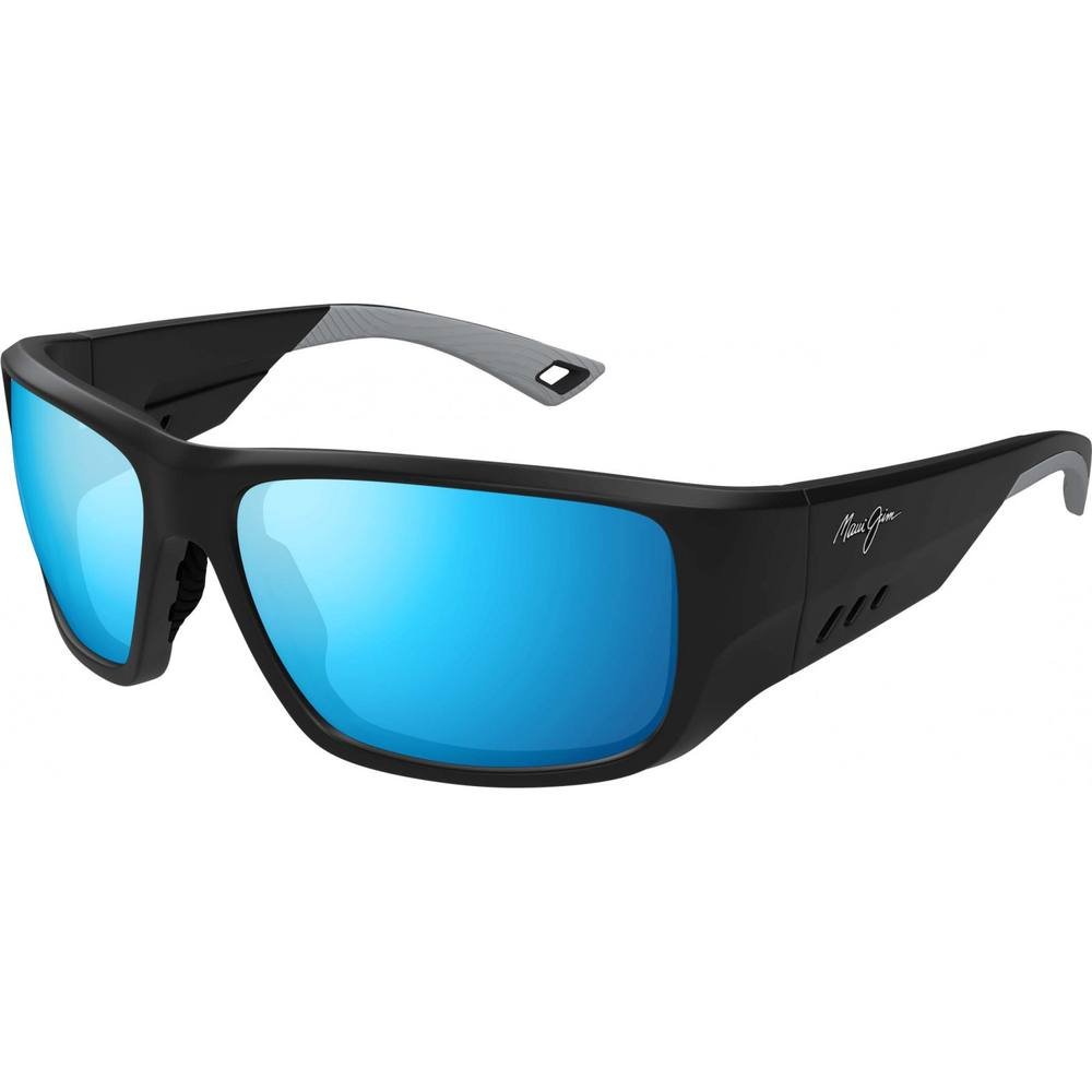 Stylish Maui Jim sunglasses with a square/rectangle frame in sleek black. Featuring blue mirrored lenses for enhanced protection and style. Ideal for outdoor activities and casual wear.