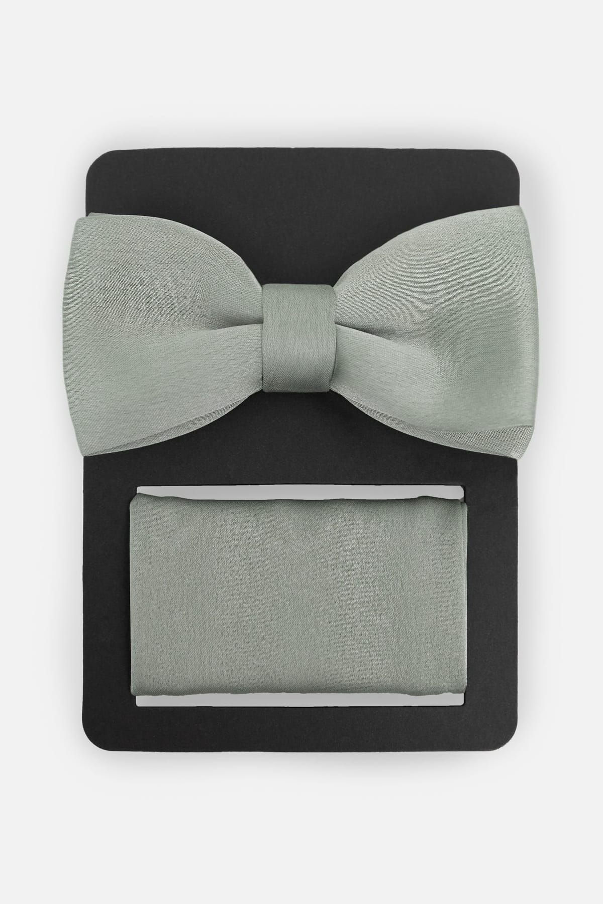 The Maya Deluxe Green Satin Bow Tie and Pocket Square Set is made from satin.