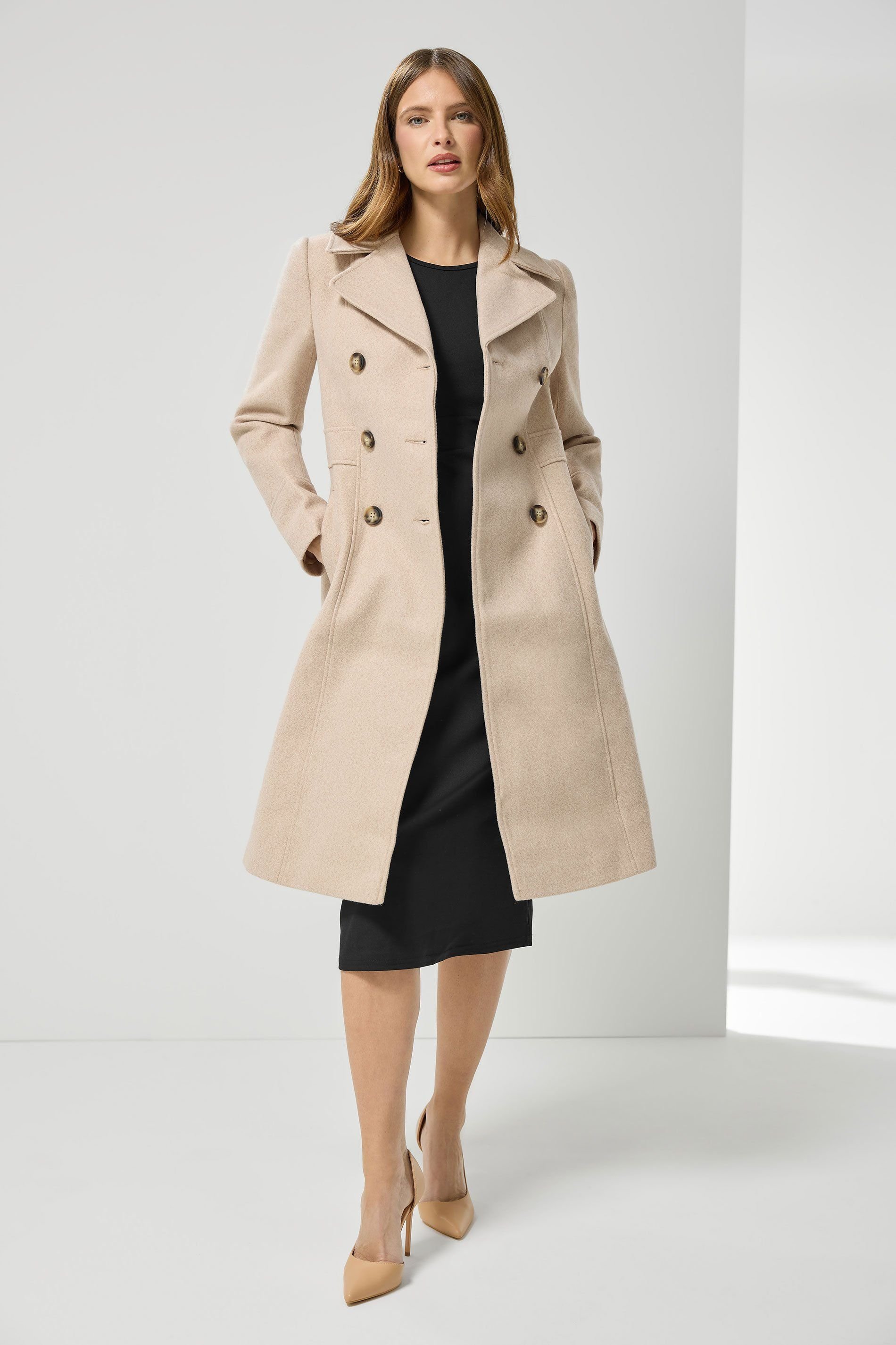 The M&Co Natural Double Breasted Midi Coat is ideal for casual, work, evening.