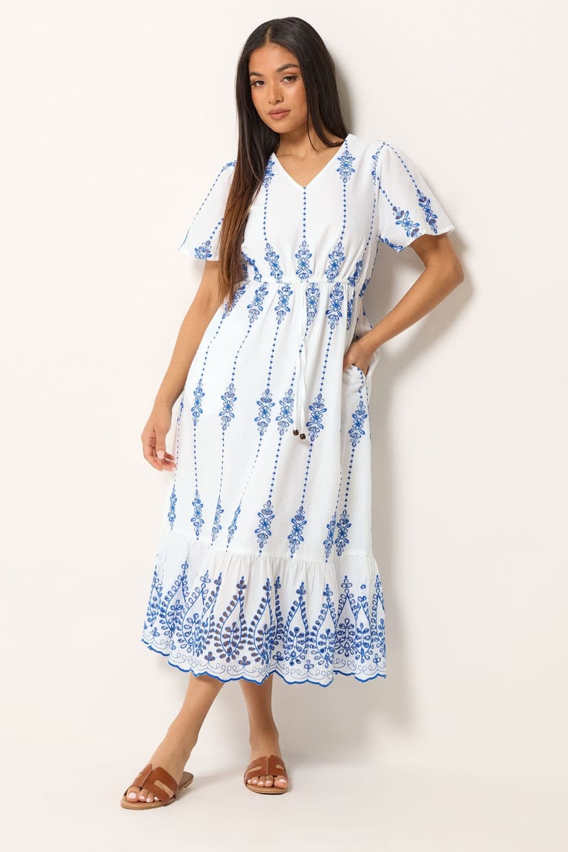 The M&Co White Cotton Broderie Dress for Women is available in sizes 10, 12, 14, 16, 18, 8.