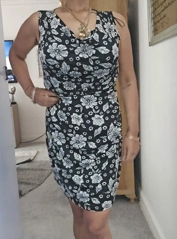 The Mela London Black & White Floral Midi Dress Sleeveless is available in sizes XXL.