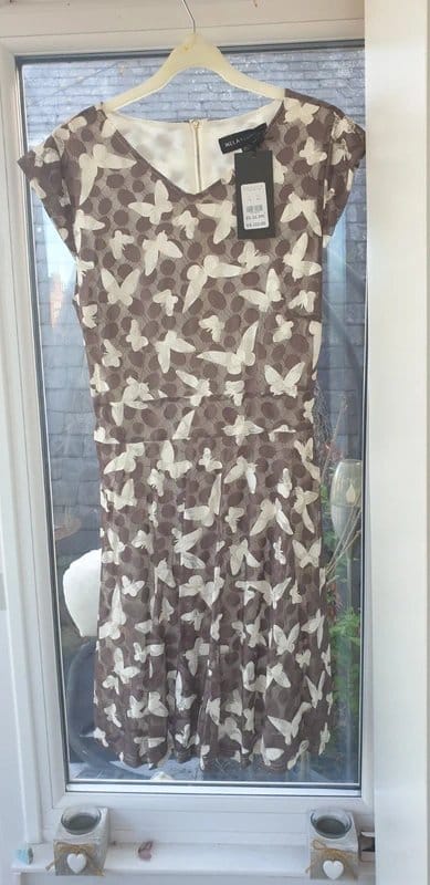 “Pair with white sandals and a straw hat for a garden party look, or style with black tights and ankle boots for an office-ready ensemble.”